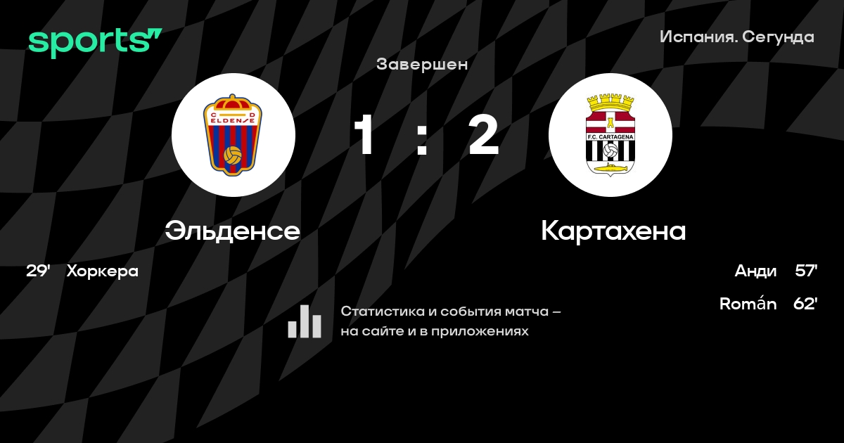 Результат прошлой игры в турнире «Сегунда»: Спортинг Хихон – Эльденсе 0:0. В последних 5 играх Эльденсе забивает 5 голов. В последних 5 играх Эльденсе пропускает 5 голов.
