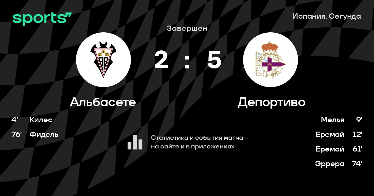 Элтон Лейте - Обрадор, Барсия, Васкес, Химо Наварро - Еремай, Лукас Перес, Мфулу, Villares Yáñez, Мелья - БарбероЗапасные: Парреньо, Puerto Huerta, Мартинес, Печа, Хайме Санчес, Хурадо, Патино, Рама, Сориано, Гауто, Эррера, Álvarez Rey