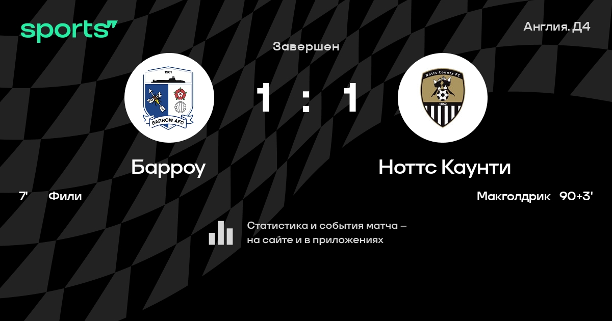 Результат прошлой игры в турнире «Лига 2»: Ноттс Каунти – Уимблдон 1:0. После 12 туров Ноттс Каунти набирает 22 очков и занимает 4 место в турнире. Лучший бомбардир команды – Алассана Джатта: он забил 6 в 9 матчах. В последних 5 играх Ноттс Каунти забивает 5 голов. В последних 5 играх Ноттс Каунти пропускает 5 голов.