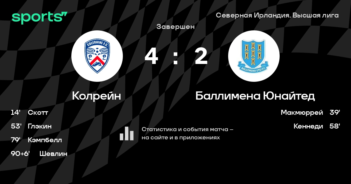 Колрейн – Баллимена Юнайтед: Колрейн забивает в 13 последних матчах против этого соперника