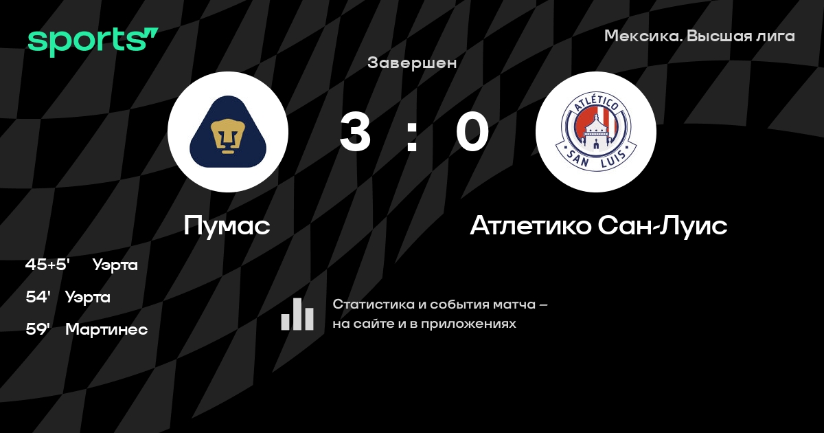 Результат прошлой игры в турнире «Высшая лига»: Атлетико Сан-Луис – Монтеррей 1:0. После 12 туров Атлетико Сан-Луис набирает 20 очков и занимает 6 место в турнире. Лучший бомбардир команды – Франк Боли: он забил 4 в 10 матчах. В последних 5 играх Атлетико Сан-Луис забивает 7 голов. В последних 5 играх Атлетико Сан-Луис пропускает 4 голов.