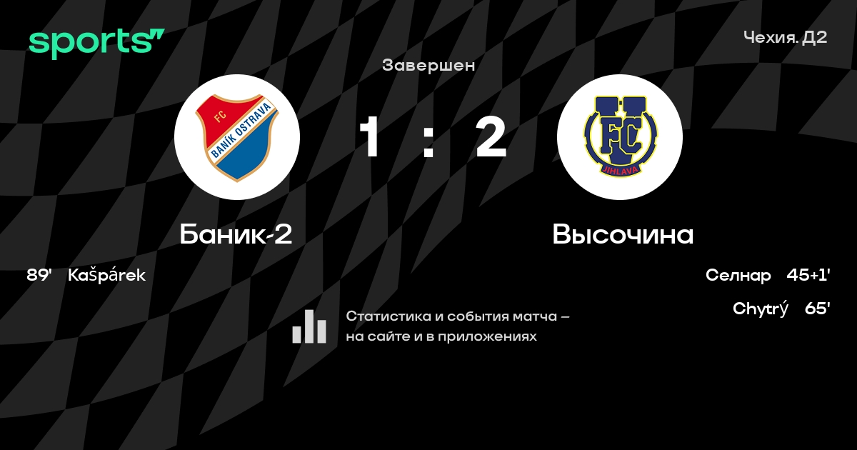 Результат прошлой игры в турнире «Лига 2»: Slavia Praha II – Высочина 2:0. После 10 туров Высочина набирает 7 очков и занимает 16 место в турнире. Лучший бомбардир команды – J. Araujo-Wilson: он забил 2 в 8 матчах. Высочина пропускает в 13 последних матчах в турнире «Лига 2». В последних 5 играх Высочина забивает 7 голов. В последних 5 играх Высочина пропускает 9 голов.