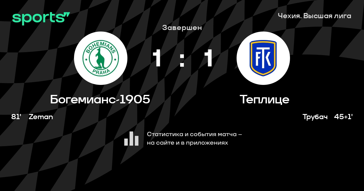 Богемианс-1905 – Теплице: Богемианс-1905 забивает в 6 последних матчах против этого соперника
