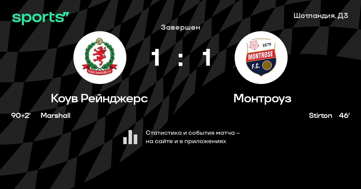 Коув Рейнджерс – Монтроуз: Коув Рейнджерс не проигрывает в 10 из 12 последних матчей против этого соперника в турнире «Лига 1»
