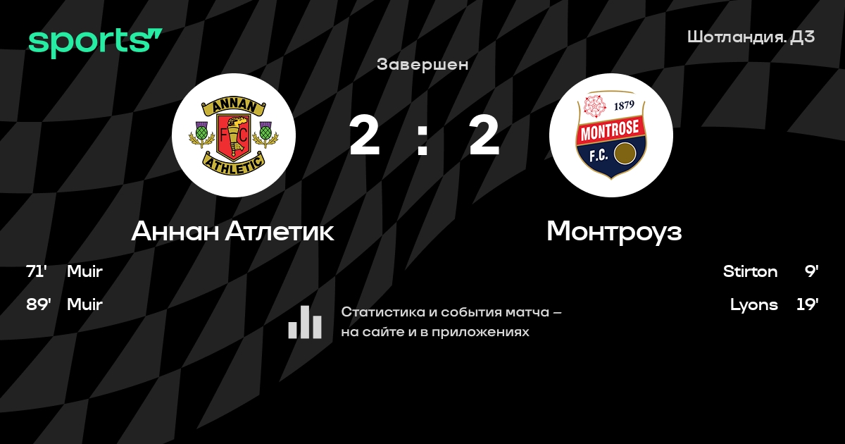 Смит - Quitongo, Брин, Гибсон, Charlie Maxwell - Диксон, Luca Ross, Макгоуэн, Смит, Тодд - MuirЗапасные: Флеминг, Хупер, Muir, Кармайкл, Fleming, Stevenson