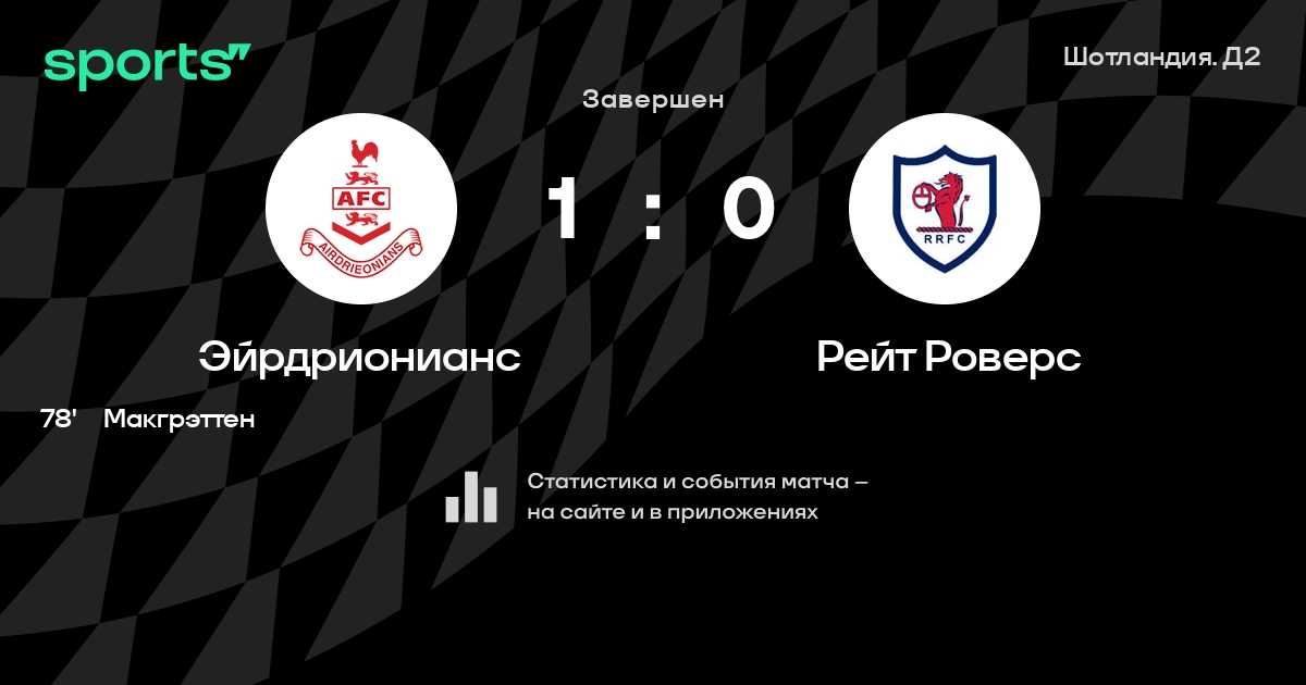 Эйрдрионианс – Рейт Роверс: Эйрдрионианс забивает в 6 из 8 последних матчей против этого соперника