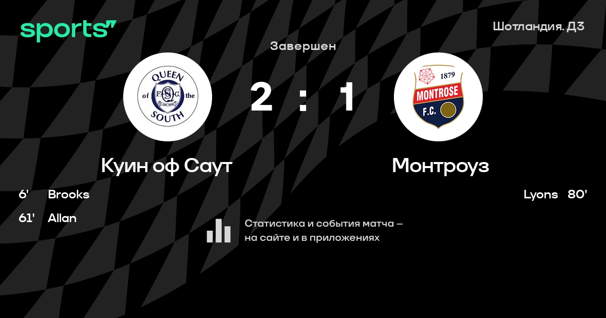 Куин оф Саут – Монтроуз: Куин оф Саут забивает в 7 из 9 последних матчей против этого соперника