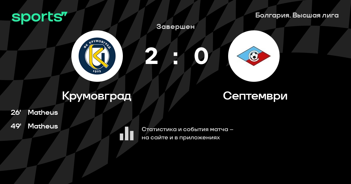 Результат прошлой игры в турнире «Высшая лига»: Черно Море – Крумовград 3:0. После 6 туров Крумовград набирает 3 очков и занимает 14 место в турнире. Лучший бомбардир команды – Божидар Кацаров: он забил 1 в 4 матчах. Крумовград проигрывает в 5 последних матчах в рамках турнира «Высшая лига». В 5 последних матчах в турнире «Высшая лига» Крумовград обязательно забивает. Крумовград пропускает в 5 последних матчах в турнире «Высшая лига». В последних 5 играх Крумовград забивает 0 голов. В последних 5 играх Крумовград пропускает 9 голов.