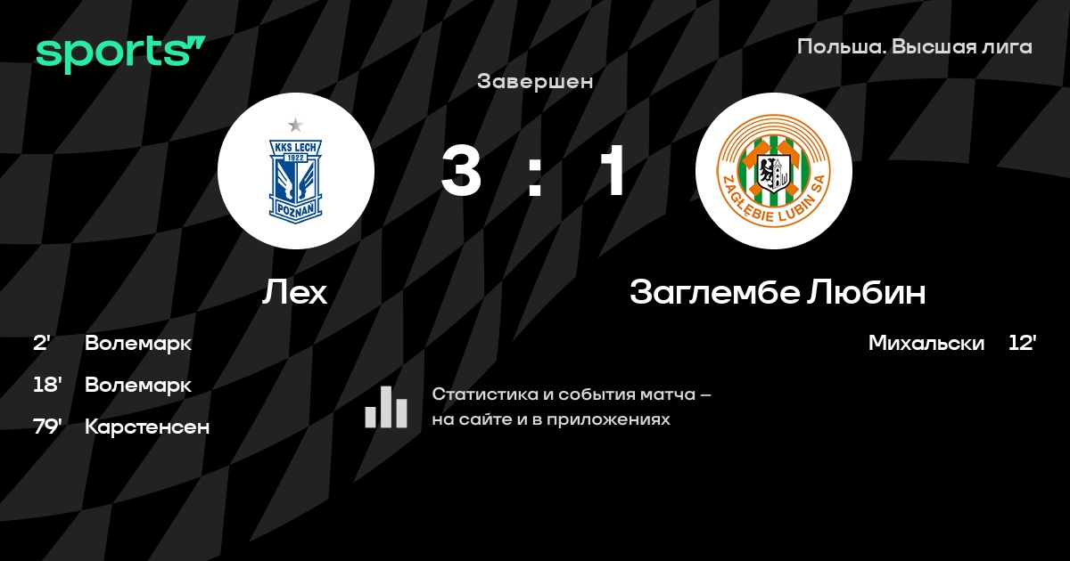 Лех – Заглембе Любин: Лех не проигрывает в 9 из 11 последних матчей против этого соперника