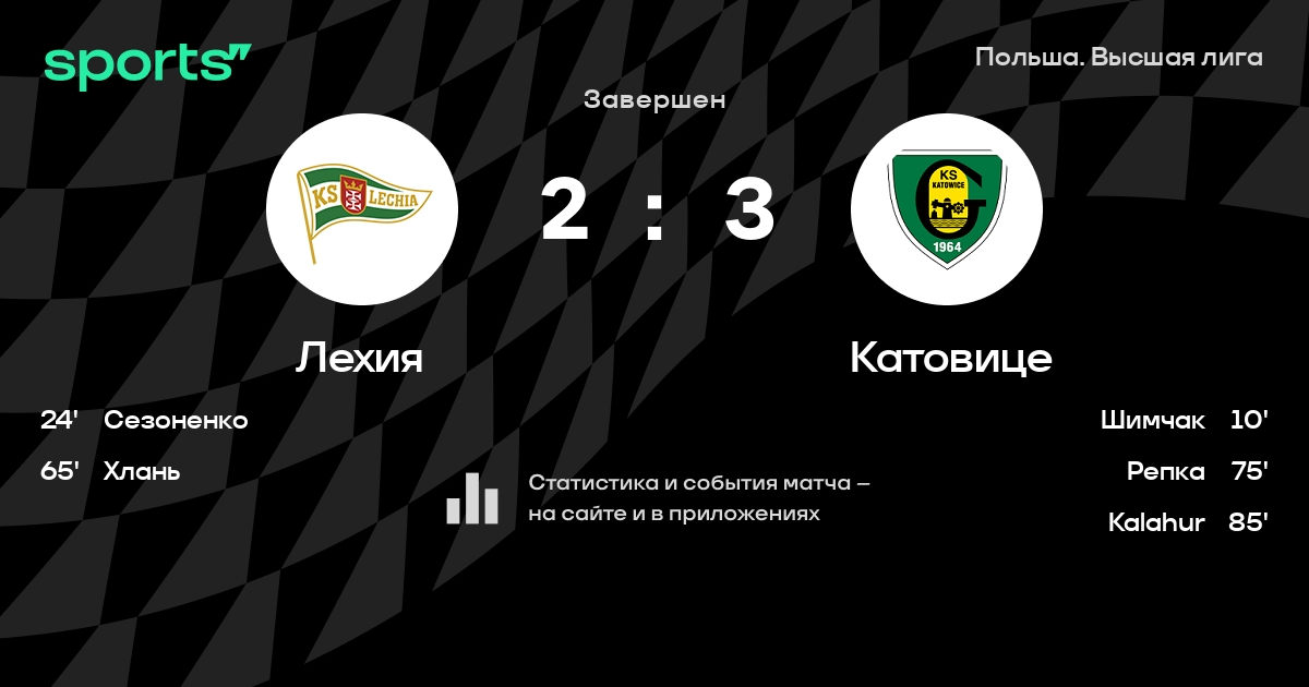 Лехия – Катовице: Катовице побеждает в 4 последних очных матчах в турнире «Высшая лига»