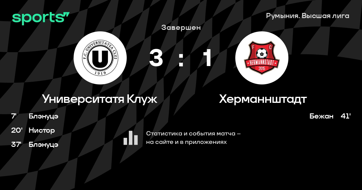 Университатя Клуж – Херманнштадт: Херманнштадт забивает в 5 из 7 последних матчей против этого соперника