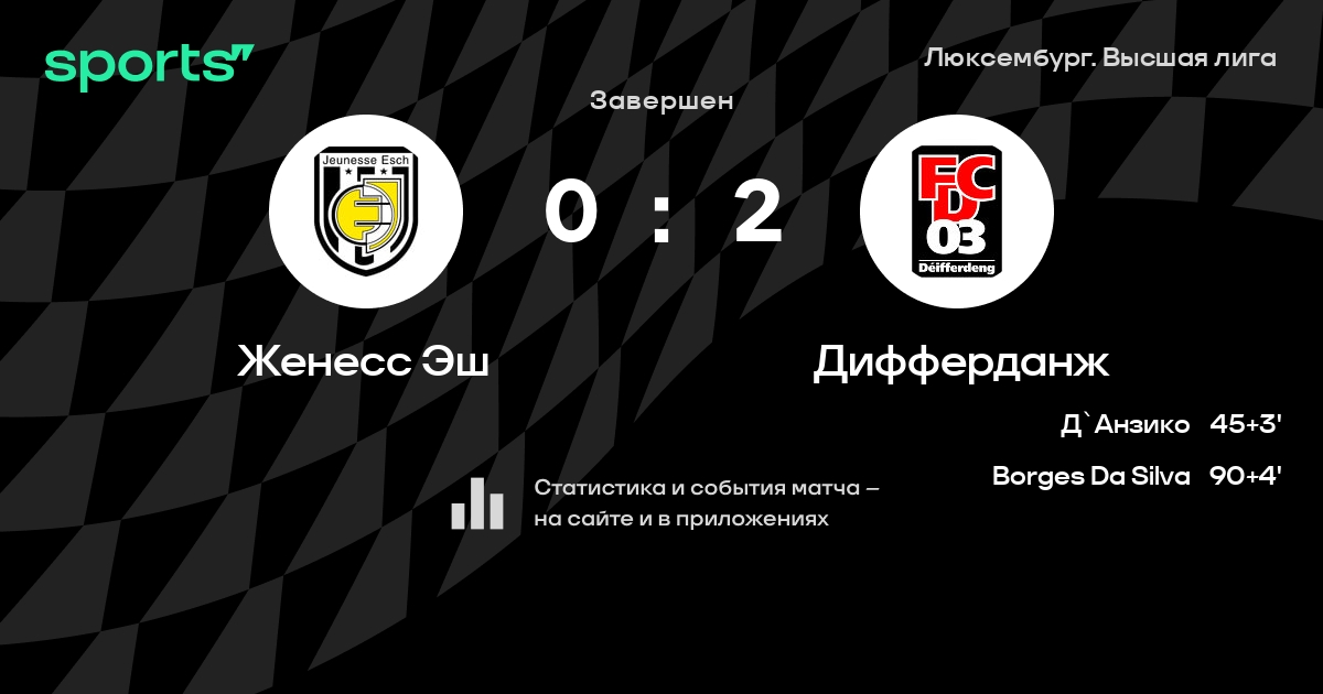Женесс Эш – Дифферданж: Женесс Эш забивает в 5 из 7 последних матчей против этого соперника