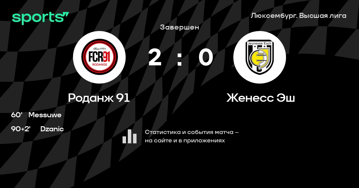 Роданж 91 – Женесс Эш: Роданж 91 забивает в 8 из 9 последних матчей против этого соперника