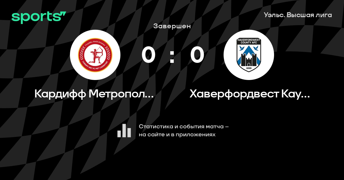 Результат прошлой игры в турнире «Премьер-лига»: Хаверфордвест Каунти – Пенибонт 0:0. После 3 туров Хаверфордвест Каунти набирает 7 очков и занимает 3 место в турнире. Лучший бомбардир команды – B. Ahmun: он забил 2 в 2 матчах. Хаверфордвест Каунти не проигрывает в 3 последних матчах в рамках турнира «Премьер-лига». В последних 5 играх Хаверфордвест Каунти забивает 9 голов. В последних 5 играх Хаверфордвест Каунти пропускает 5 голов.