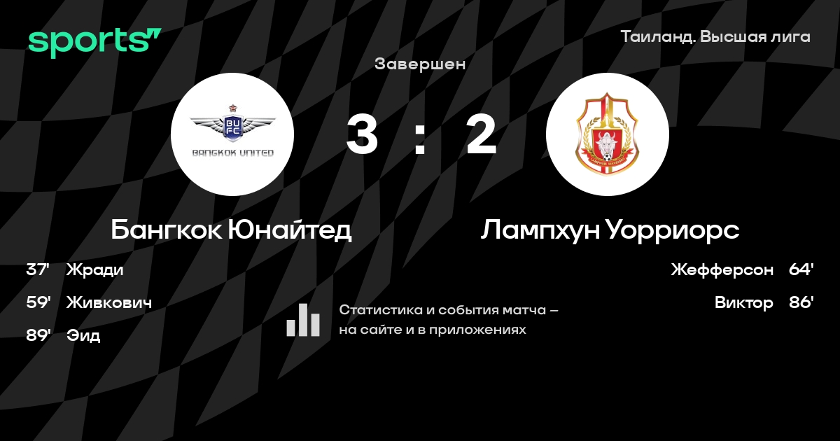 Результат прошлой игры в турнире «Премьер-лига»: Накхонпатхом Юнайтед – Бангкок Юнайтед 0:3. После 4 туров Бангкок Юнайтед набирает 7 очков и занимает 6 место в турнире. Лучший бомбардир команды – Ришайро Живкович: он забил 2 в 5 матчах. В последних 5 играх Бангкок Юнайтед забивает 8 голов. В последних 5 играх Бангкок Юнайтед пропускает 6 голов.