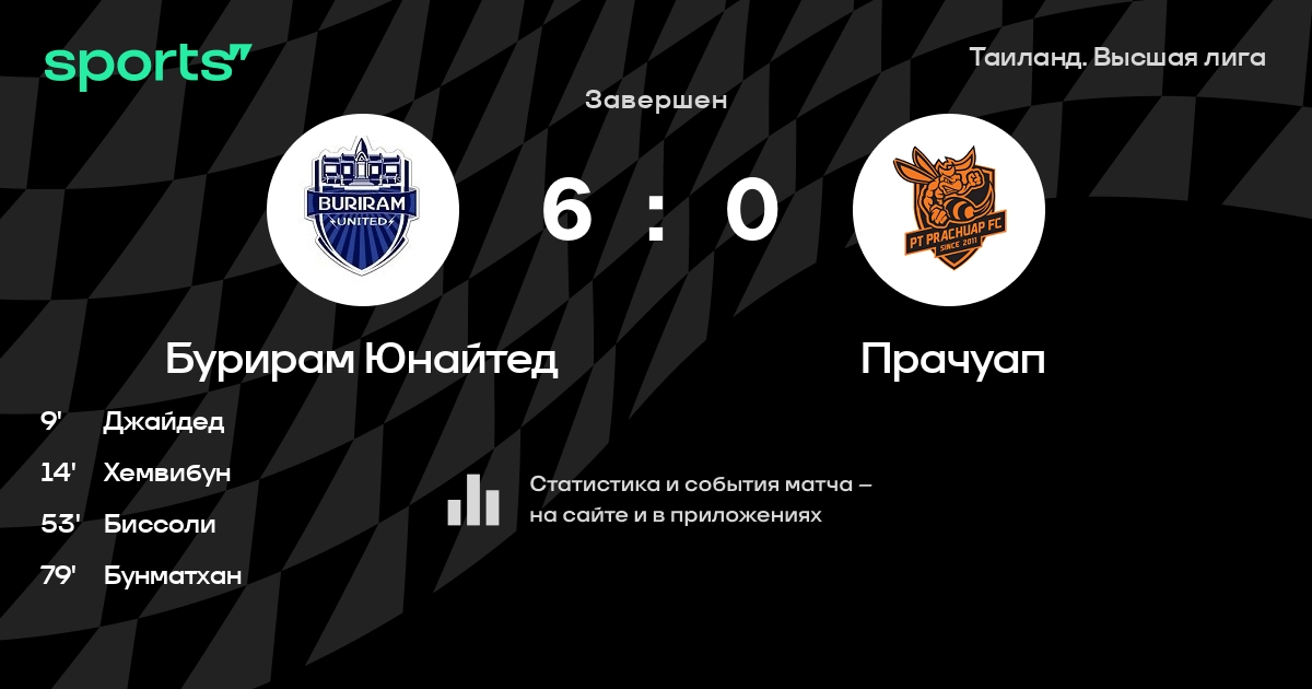 Результат прошлой игры в турнире «Премьер-лига»: Прачуап – Кхонкэн Юнайтед 1:0. После 6 туров Прачуап набирает 10 очков и занимает 5 место в турнире. Лучший бомбардир команды – Tardeli Reis: он забил 2 в 6 матчах. Прачуап не проигрывает в 3 последних матчах в рамках турнира «Премьер-лига». В 3 последних матчах в турнире «Премьер-лига» Прачуап обязательно забивает. В последних 5 играх Прачуап забивает 9 голов. В последних 5 играх Прачуап пропускает 3 голов.