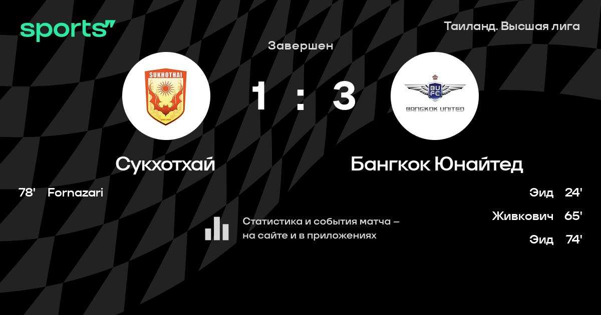Сукхотхай – Бангкок Юнайтед: Бангкок Юнайтед не пропускает в 0 из 7 последних матчей против этого соперника