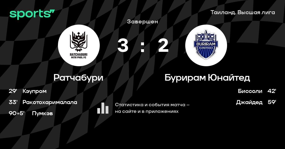 Ратчабури – Бурирам Юнайтед: Бурирам Юнайтед не проигрывает в 9 последних матчах против этого соперника