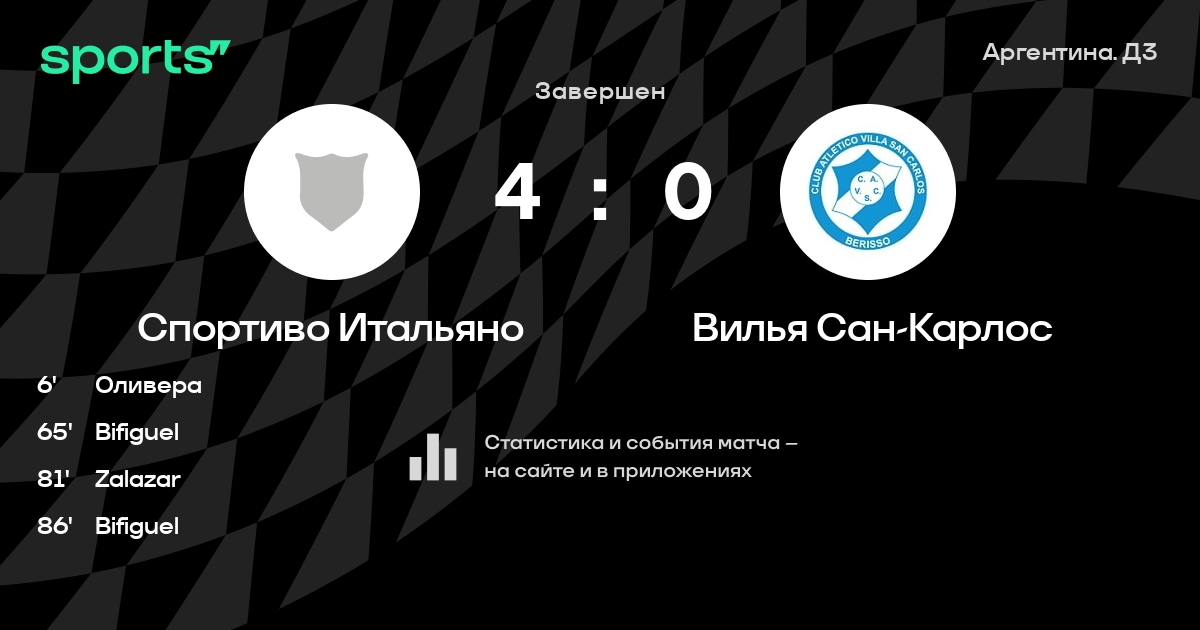 Результат прошлой игры в турнире «Примера B»: Спортиво Итальяно – Вилья Дальмине 0:1. После 17 туров Спортиво Итальяно набирает 19 очков и занимает 14 место в турнире. Лучший бомбардир команды – F. Zicarelli: он забил 4 в 17 матчах. Спортиво Итальяно не может выиграть в 6 последних матчах в рамках турнира «Примера B». В последних 5 играх Спортиво Итальяно забивает 2 голов. В последних 5 играх Спортиво Итальяно пропускает 9 голов.