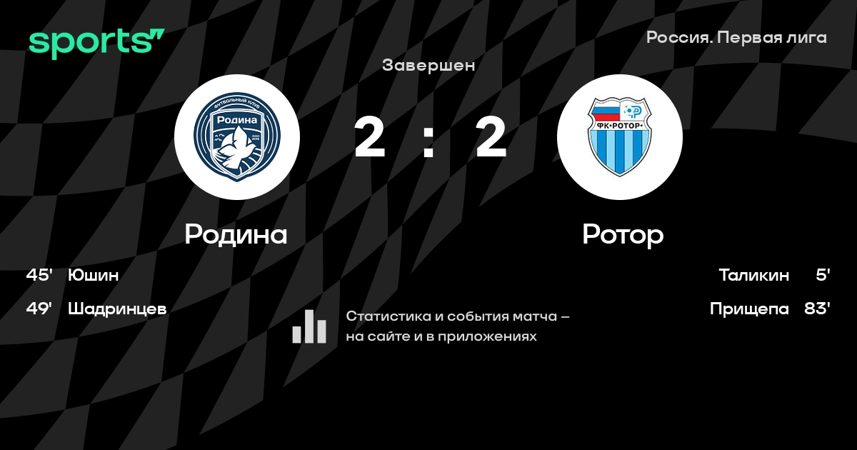 Первая лига. «Родина» поделила очки с «Ротором» – 2:2
