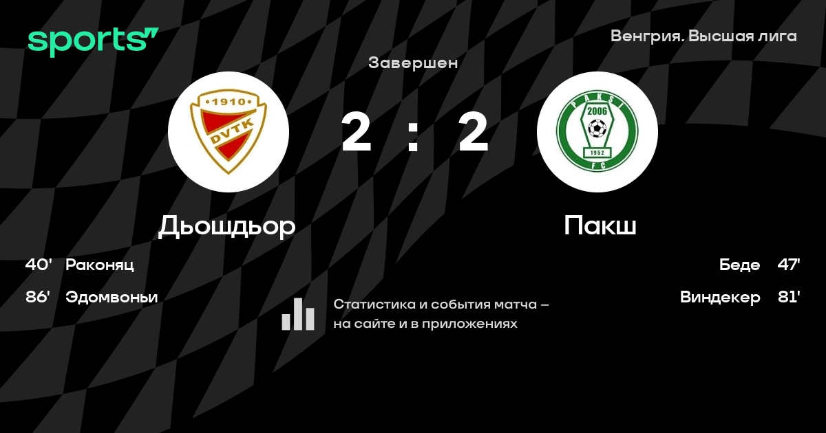 Дьошдьор – Пакш: Дьошдьор забивает в 9 последних матчах против этого соперника