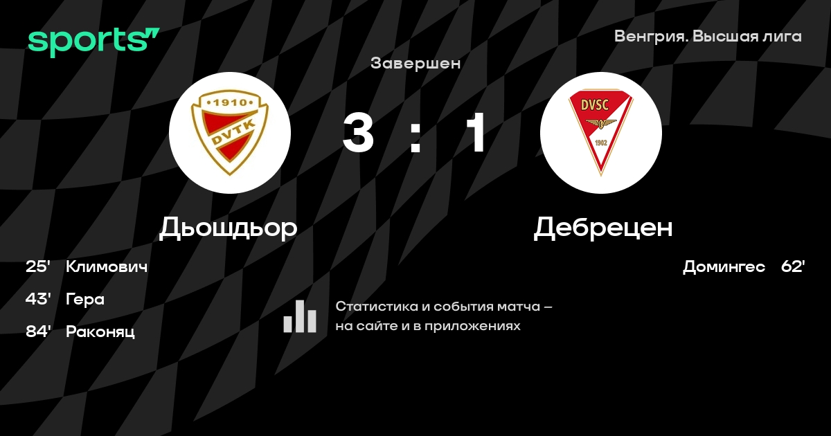 Результат прошлой игры в турнире «Высшая лига»: Ференцварош – Дьошдьор 3:3. После 14 туров Дьошдьор набирает 23 очков и занимает 5 место в турнире. Лучший бомбардир команды – Марко Раконяц: он забил 4 в 11 матчах. Дьошдьор не проигрывает в 4 последних матчах в рамках турнира «Высшая лига». В 4 последних матчах в турнире «Высшая лига» Дьошдьор обязательно забивает. В последних 5 играх Дьошдьор забивает 10 голов. В последних 5 играх Дьошдьор пропускает 9 голов.