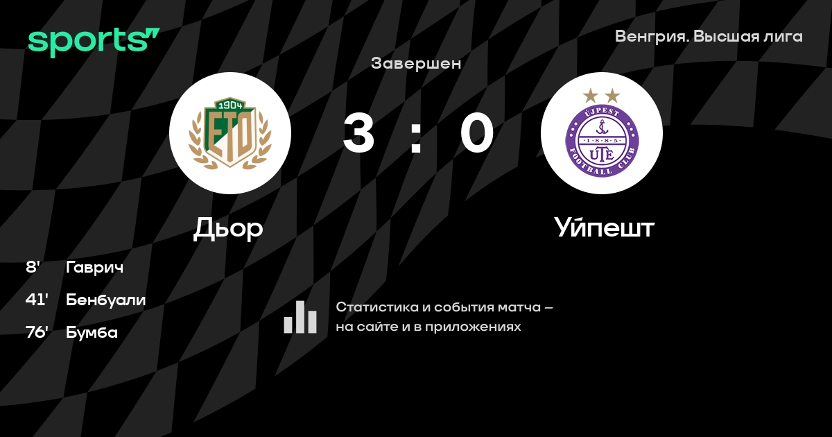Результат прошлой игры в турнире «Высшая лига»: Дьошдьор – Уйпешт 1:1. После 18 туров Уйпешт набирает 28 очков и занимает 6 место в турнире. Лучший бомбардир команды – Матия Люйич: он забил 7 в 15 матчах. Уйпешт не проигрывает в 7 последних матчах в рамках турнира «Высшая лига». В 3 последних матчах в турнире «Высшая лига» Уйпешт обязательно забивает. Уйпешт пропускает в 3 последних матчах в турнире «Высшая лига». В последних 5 играх Уйпешт забивает 5 голов. В последних 5 играх Уйпешт пропускает 2 голов.