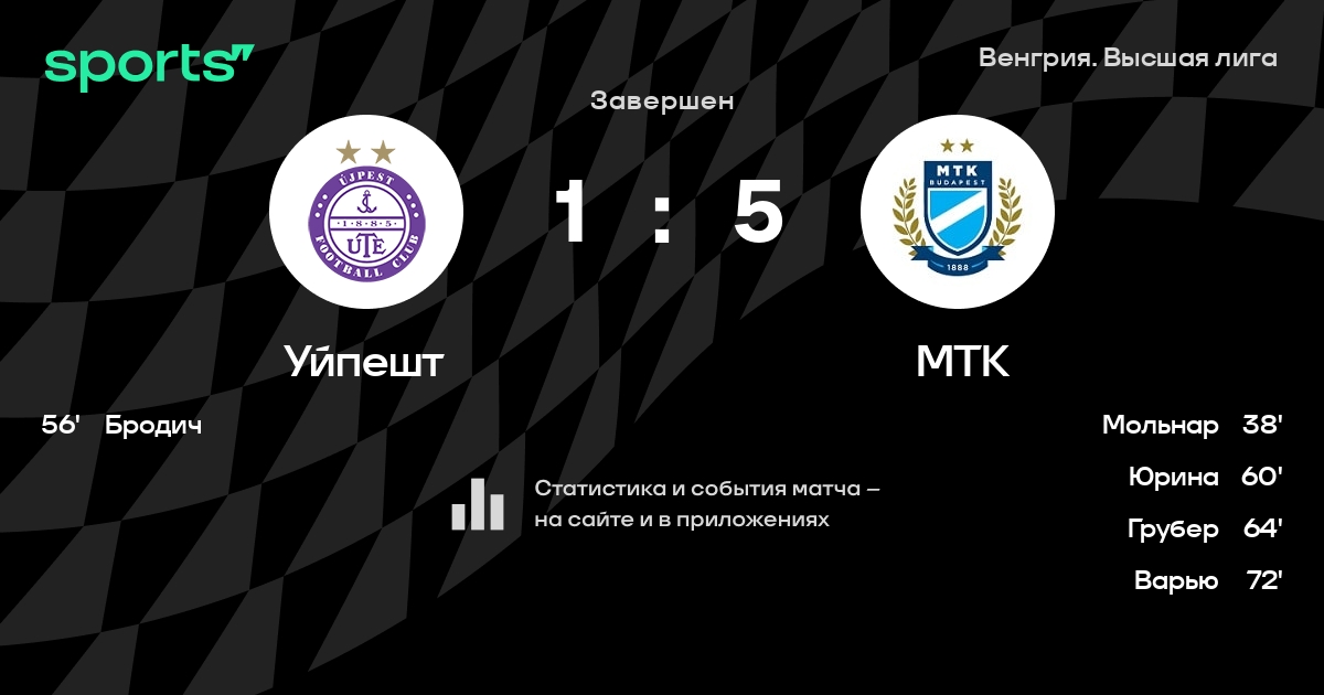 Уйпешт – МТК: МТК побеждает в 4 последних очных матчах