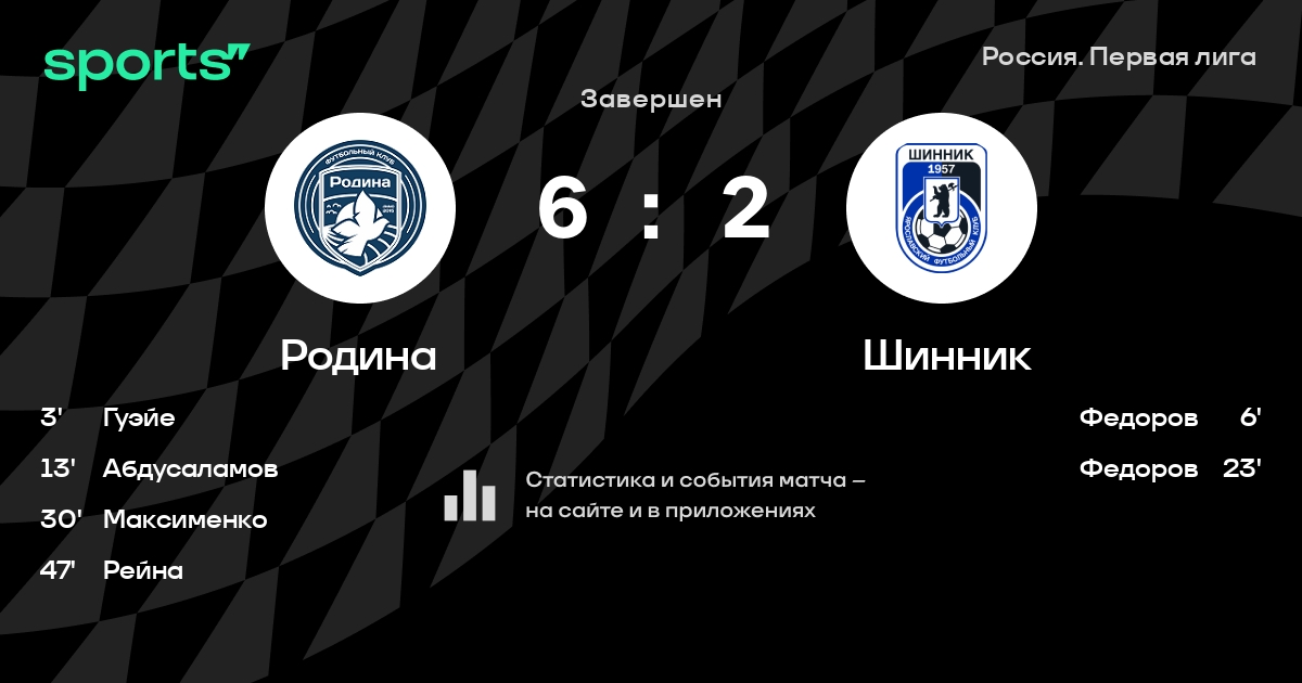 Родина – Шинник: Родина не пропускает в 3 последних матчах против этого соперника