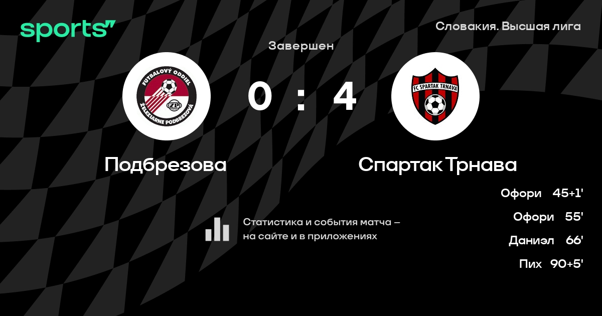 Трансляция Подбрезова - Спартак Трнава