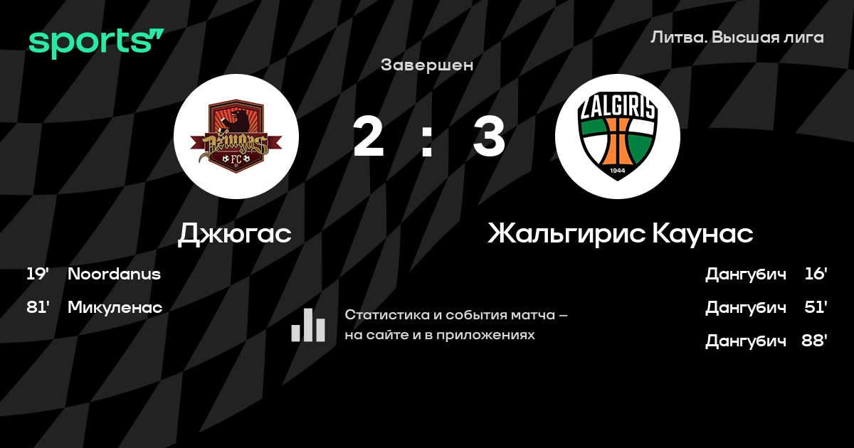 Джюгас – Жальгирис Каунас: Жальгирис Каунас побеждает в 3 последних очных матчах