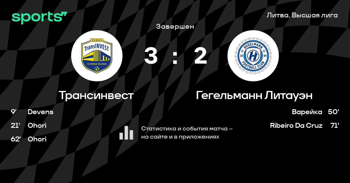| 1 | Жальгирис Вильнюс | 36 | 24 | 7 | 5 | 76 | 31 | +45 | 79 | ||