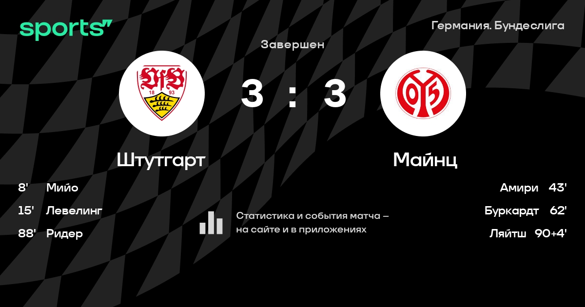 | 9 | Штутгарт | 34 | 14 | 8 | 12 | 64 | 53 | +11 | 50 | ||