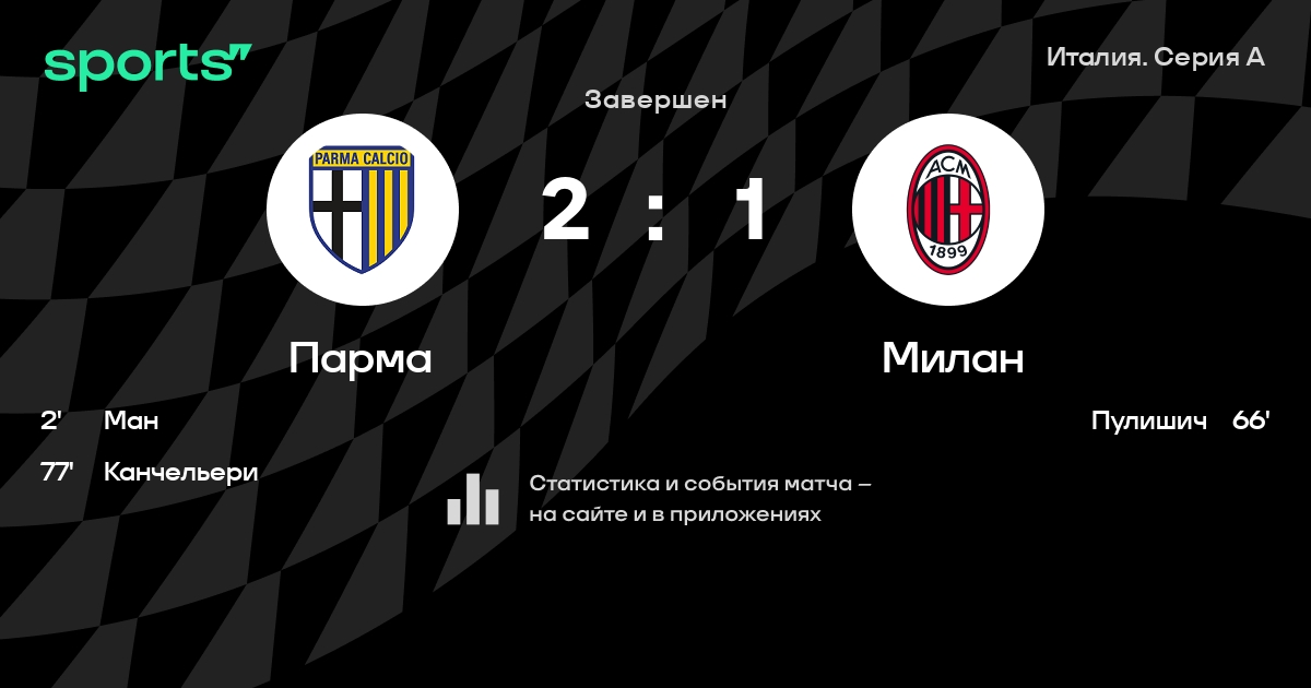 «Парма» сделала «Милан» – 2:1. Пулишич сравнял счет на 66-й, но Канчельери забил на 77-й