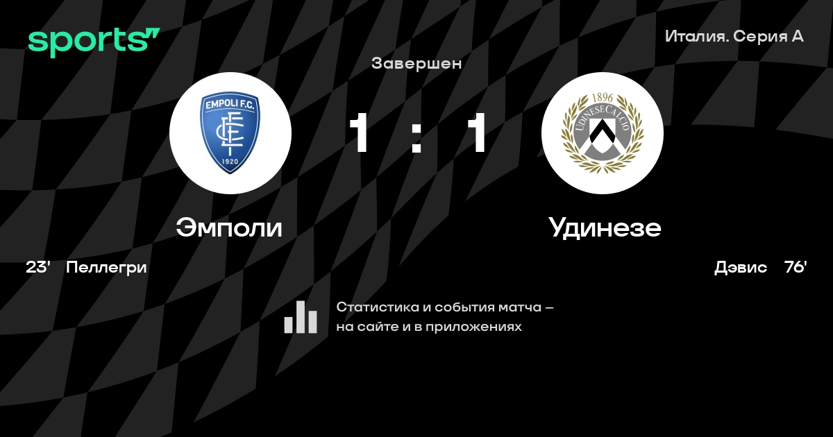 Чемпионат Италии. «Удинезе» и «Эмполи» сыграли вничью, «Венеция» уступила «Лечче»