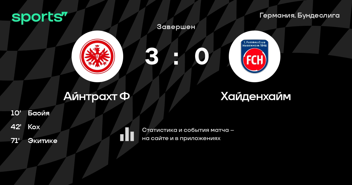 Айнтрахт Ф – Хайденхайм: Айнтрахт Ф побеждает в 4 последних очных матчах