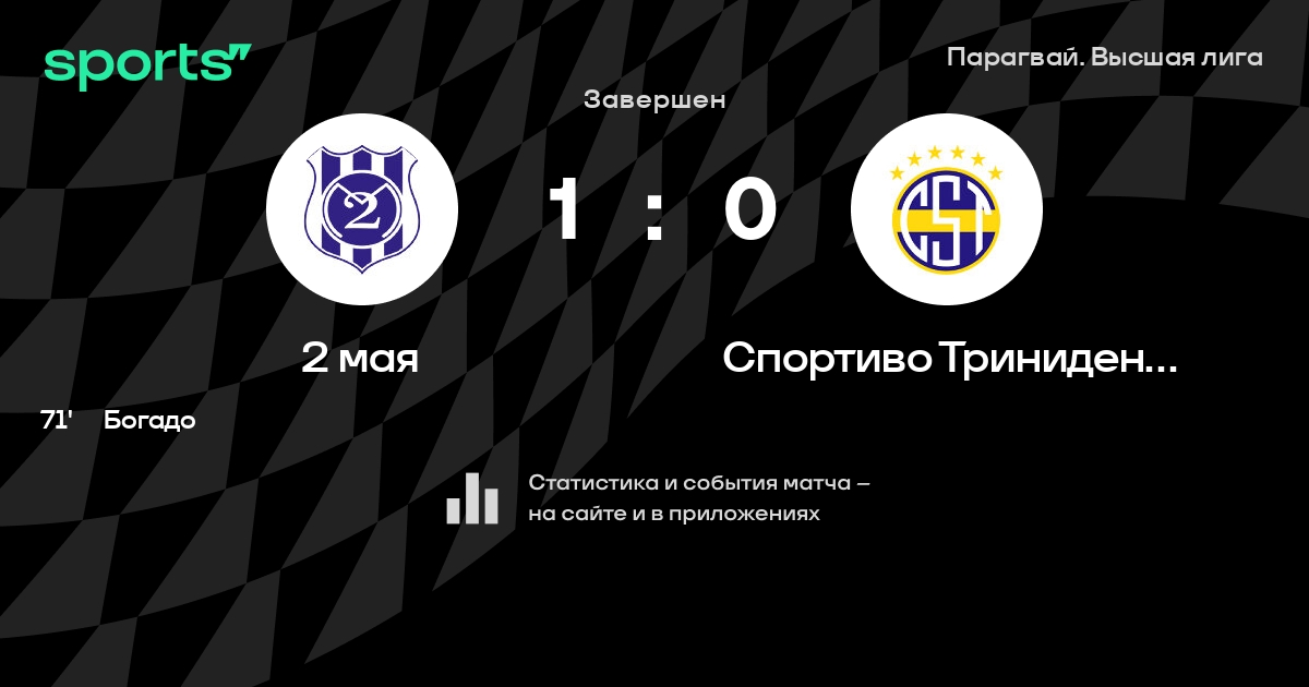 2 мая – Спортиво Триниденсе: 2 мая не проигрывает в 5 из 6 последних матчей против этого соперника в турнире «Примера»
