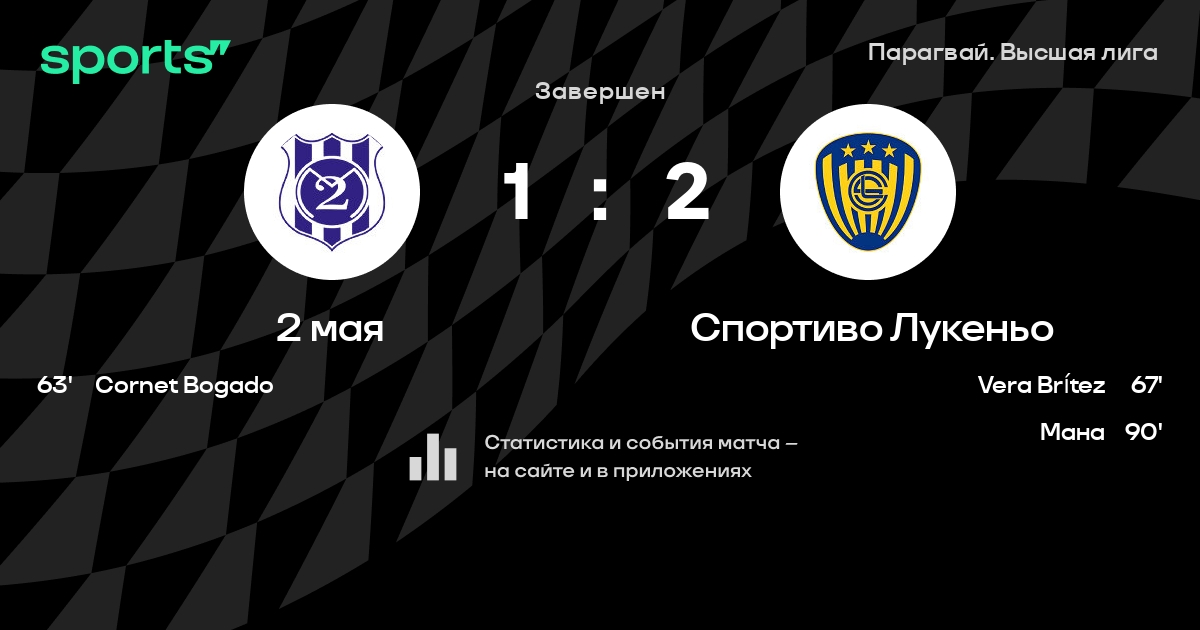 Результат прошлой игры в турнире «Примера»: 2 мая – Олимпия Асунсьон 0:0. После 20 туров 2 мая набирает 33 очков и занимает 3 место в турнире. Лучший бомбардир команды – Родриго Руис Диас: он забил 6 в 20 матчах. 2 мая не проигрывает в 4 последних матчах в рамках турнира «Примера». 2 мая не пропускает в 4 последних матчах в турнире «Примера». В последних 5 играх 2 мая забивает 5 голов. В последних 5 играх 2 мая пропускает 2 голов.