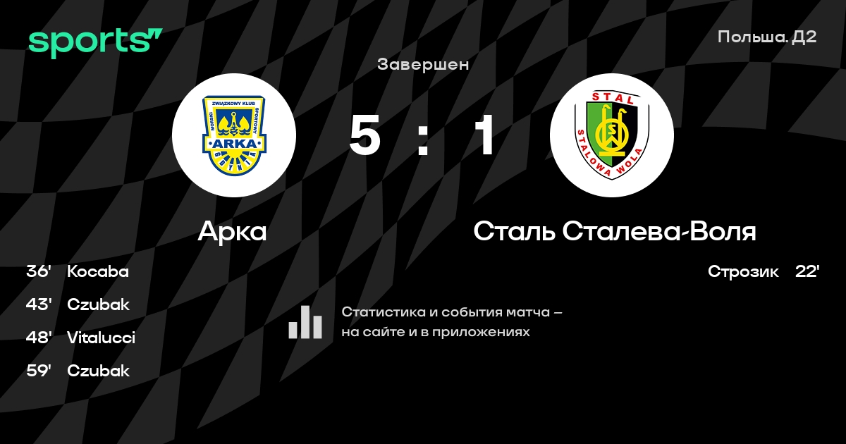 Результат прошлой игры в турнире «Первая лига»: Тыхы – Арка 1:1. После 16 туров Арка набирает 31 очков и занимает 3 место в турнире. Лучший бомбардир команды – K. Czubak: он забил 11 в 18 матчах. В 15 последних матчах в турнире «Первая лига» Арка обязательно забивает. В последних 5 играх Арка забивает 6 голов. В последних 5 играх Арка пропускает 7 голов.