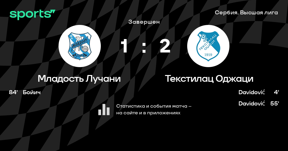 Младость Лучани - Текстилац Оджаци: статистика матча