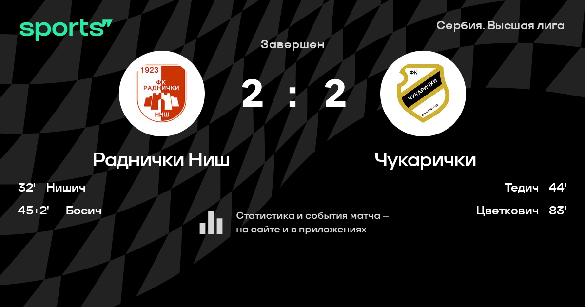 Миркович - Hamady Diop, Серафимович, Йованович, Роган - Сиссоко, Станкович, Туфегджич, Никчевич, Uroš Miladinović - ТедичЗапасные: Каличанин, Суботич, Бачанин, Dzigba, Милоевич, Subotić, Цветкович, Кабич, Павков, Ционис, Kwabla Selorm Vadze