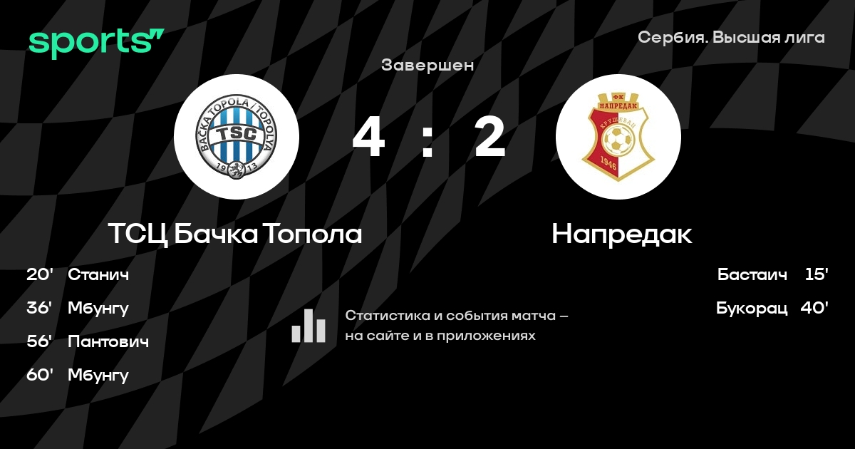 ТСЦ Бачка Топола – Напредак: ТСЦ Бачка Топола не проигрывает в 8 последних матчах против этого соперника