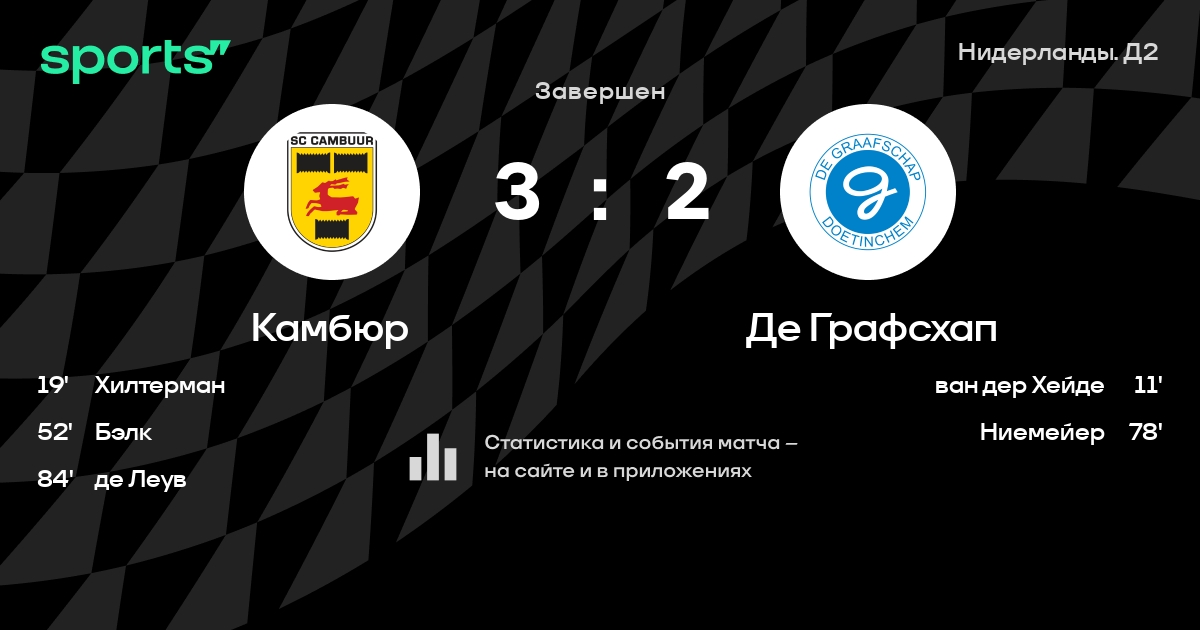 Камбюр – Де Графсхап: Де Графсхап не проигрывает в 8 из 10 последних матчей против этого соперника в гостях
