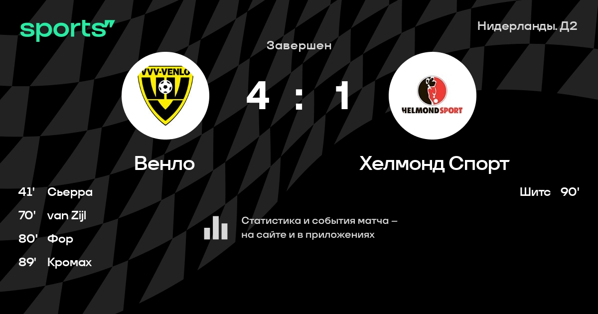 Венло – Хелмонд Спорт: Хелмонд Спорт не проигрывает в 5 последних матчах против этого соперника