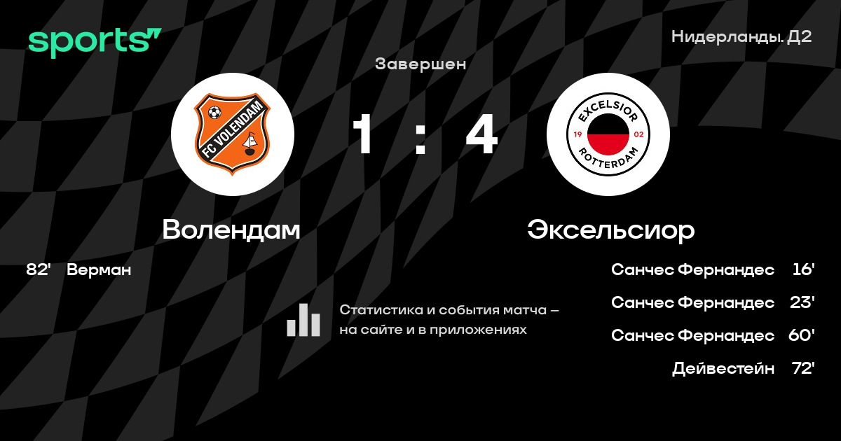 | 1 | Волендам | 38 | 26 | 4 | 8 | 87 | 48 | +39 | 82 | ||