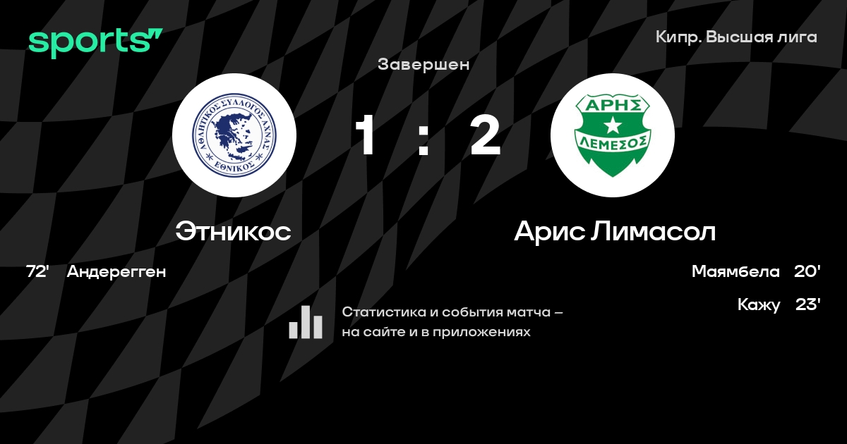 Результат прошлой игры в турнире «Лига 1»: Арис Лимасол – Омония 2:0. После 6 туров Арис Лимасол набирает 14 очков и занимает 2 место в турнире. Лучший бомбардир команды – Георгий Квилитая: он забил 4 в 6 матчах. Арис Лимасол не проигрывает в 8 последних матчах в рамках турнира «Лига 1». В последних 5 играх Арис Лимасол забивает 7 голов. В последних 5 играх Арис Лимасол пропускает 1 голов.