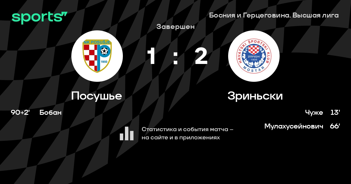 | 5 | Широки Бриег | 33 | 13 | 7 | 13 | 43 | 46 | -3 | 46 | ||