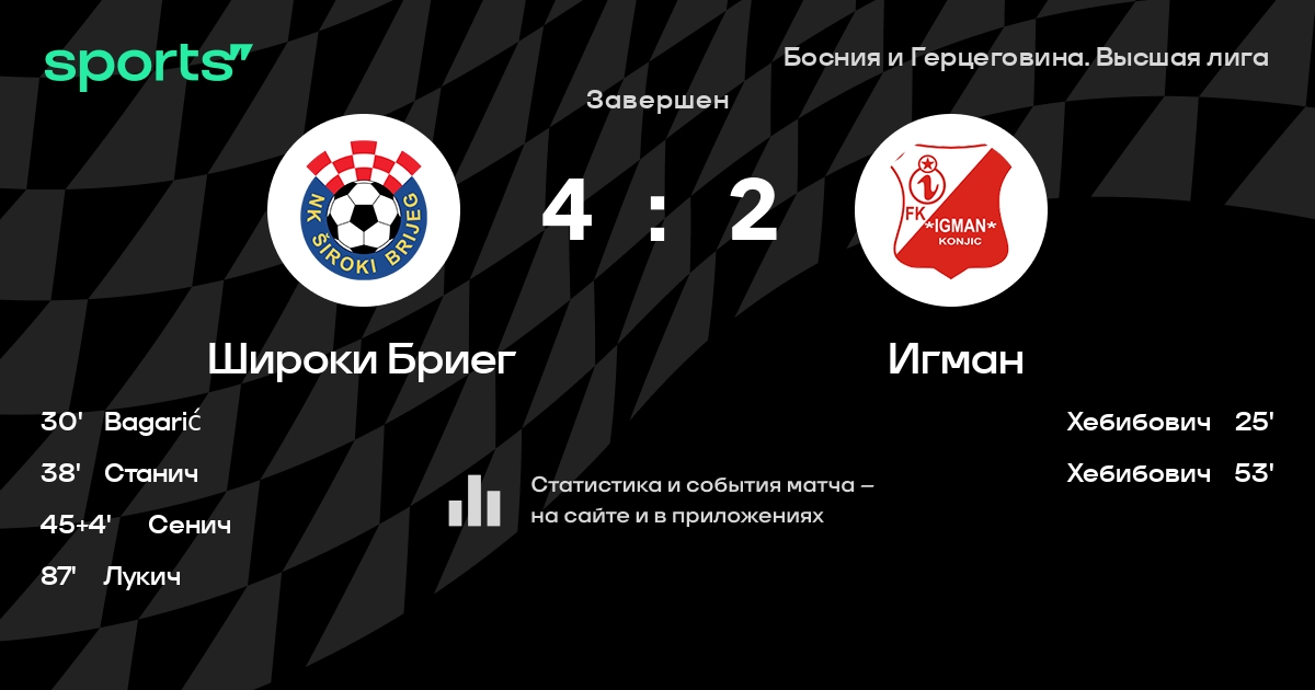Результат прошлой игры в турнире «Высшая лига»: Вележ – Широки Бриег 3:1. После 14 туров Широки Бриег набирает 16 очков и занимает 7 место в турнире. Лучший бомбардир команды – S. Chinedu: он забил 5 в 10 матчах. В последних 5 играх Широки Бриег забивает 14 голов. В последних 5 играх Широки Бриег пропускает 9 голов.