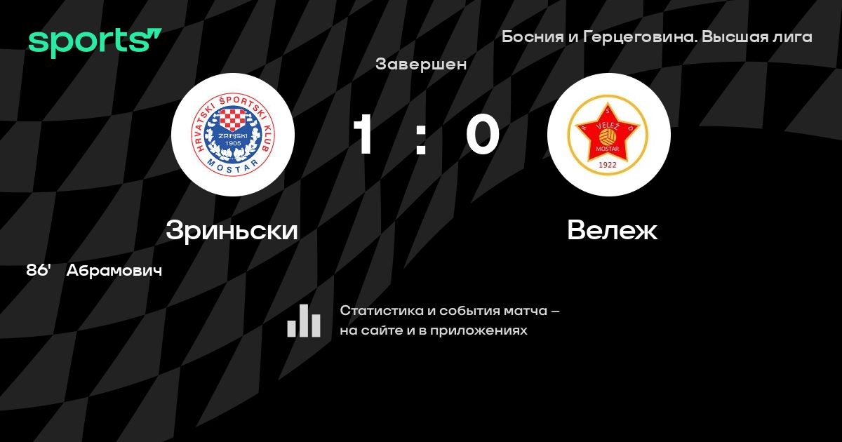 Зриньски – Вележ: Зриньски не пропускает в 2 из 7 последних матчей против этого соперника