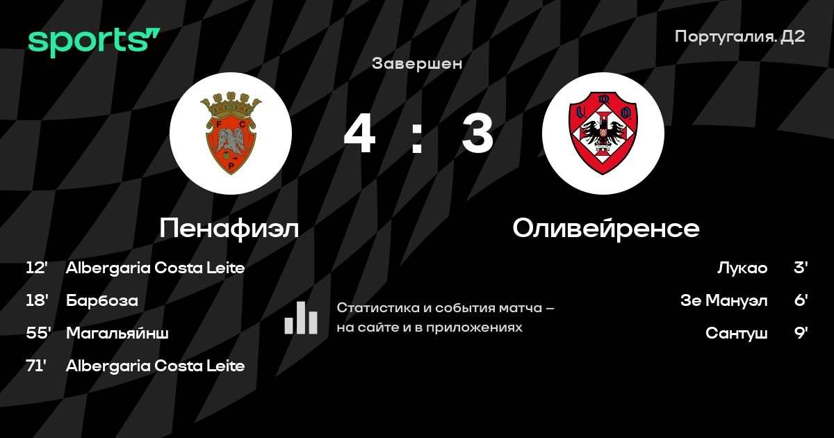 Пенафиэл – Оливейренсе: Пенафиэл не проигрывает в 6 из 8 последних матчей против этого соперника дома в турнире «Сегунда»